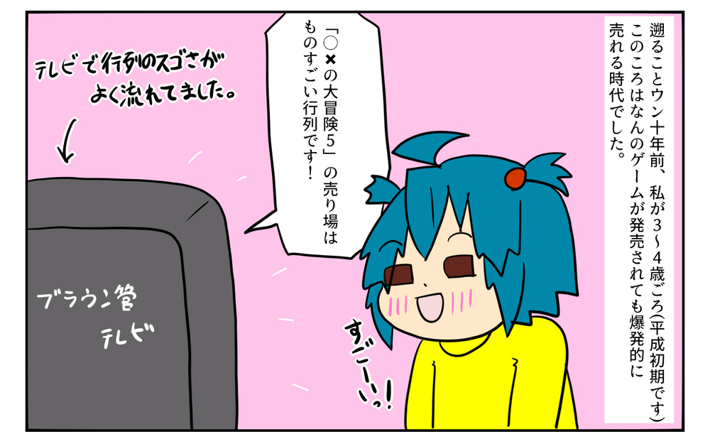 ビッグタイトルはもちろん、どんなゲームでも発売されればたちまち大盛り上がりになり、テレビアニメとアニメの間のCMはゲームCMで埋まっていた記憶があります。
