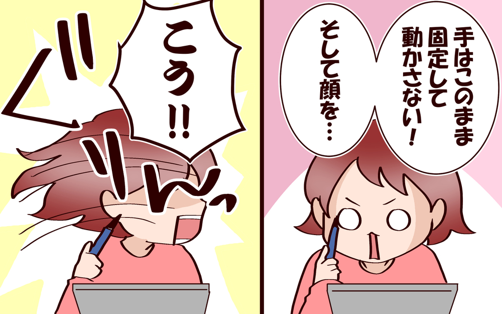 勢いよく首を振りすぎたせいで見事にこめかみまでアイラインが到達しておりました。