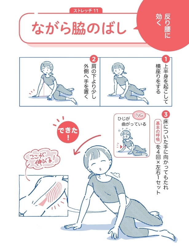 反り腰に効く 「ながら脇のばし」と「すべり台」【筋トレざせつ女子が行き着いた 1分やせストレッチ Vol.8】